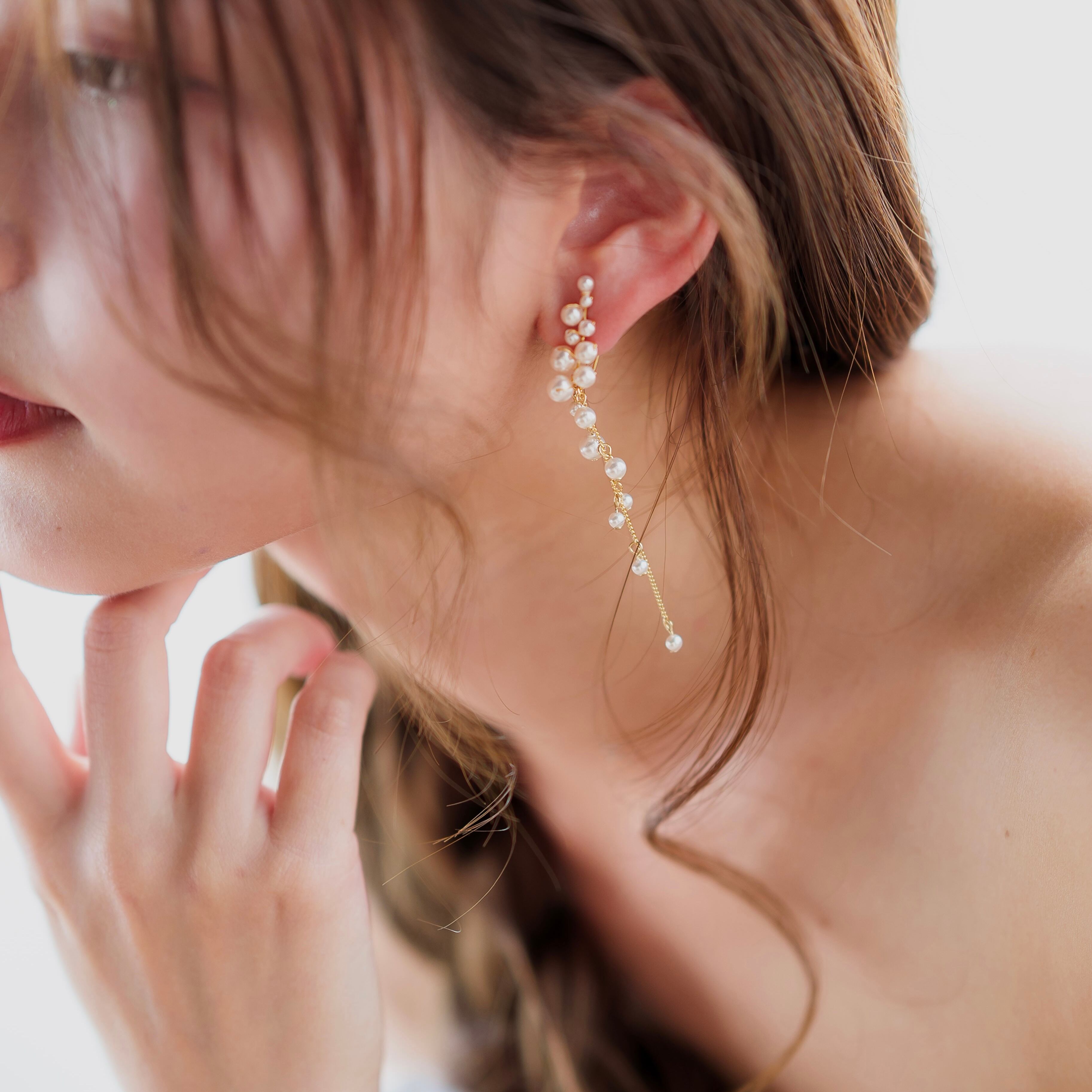そこからこぼれ落ちていく情景をイメージしてチェーンにまばらにパールをつけました。